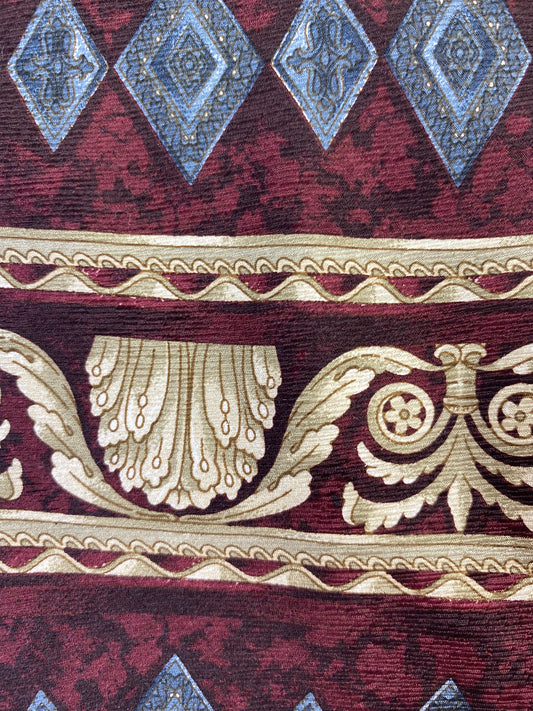 90s Deadstock Silk Necktie, Men's Vintage Wine/ Taupe/ Blue Neo-Classical Pattern Tie, NOS