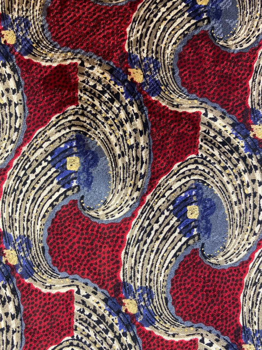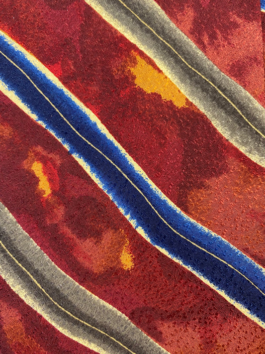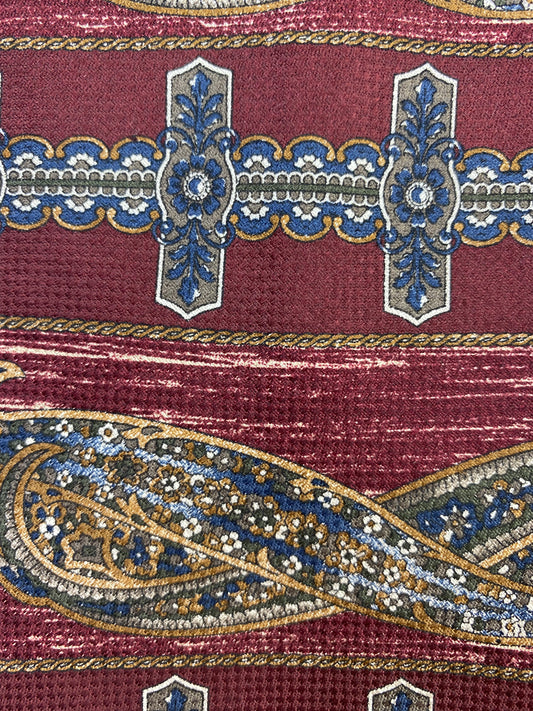 90s Deadstock Silk Necktie, Men's Vintage Wine/ Blue Abstract Indian Pattern Tie, NOS
