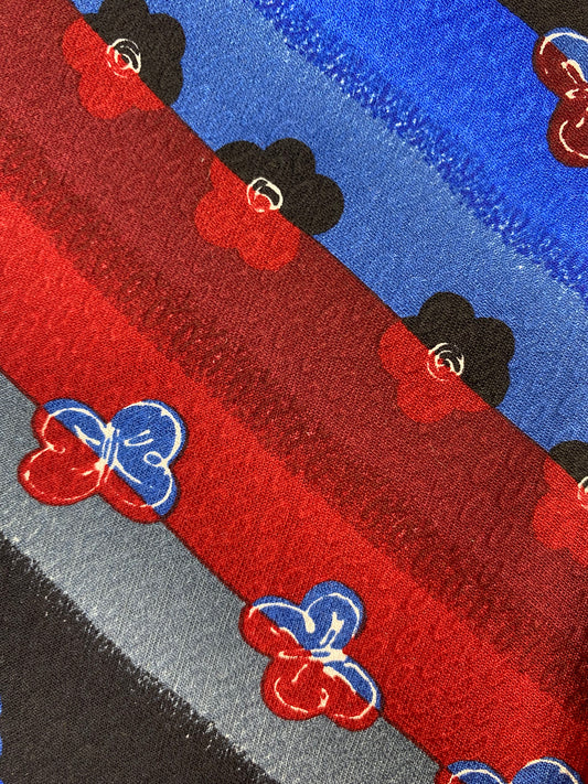 90s Deadstock Silk Necktie, Men's Vintage Wine/ Blue/ Black Floral Butterfly Diagonal Stripe Pattern Tie, NOS