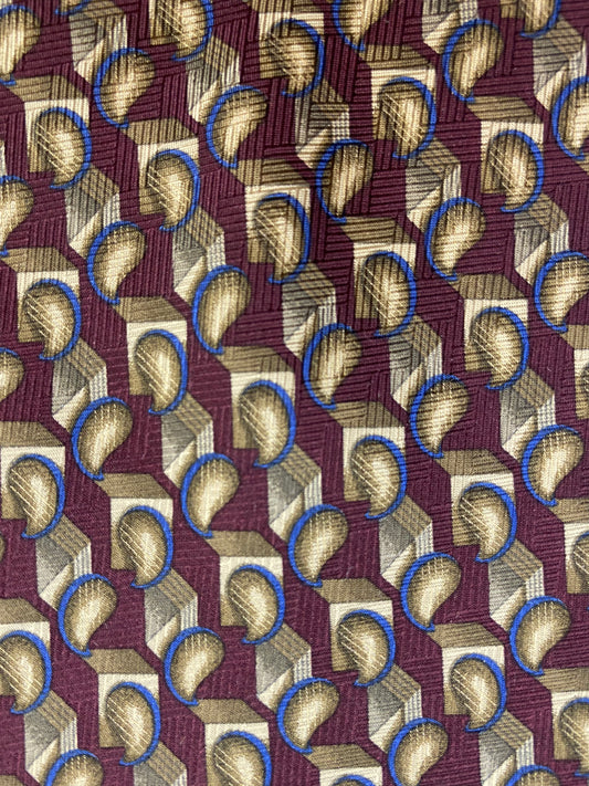 90s Deadstock Silk Necktie, Men's Vintage Wine/ Blue Geometric Pattern Tie, NOS