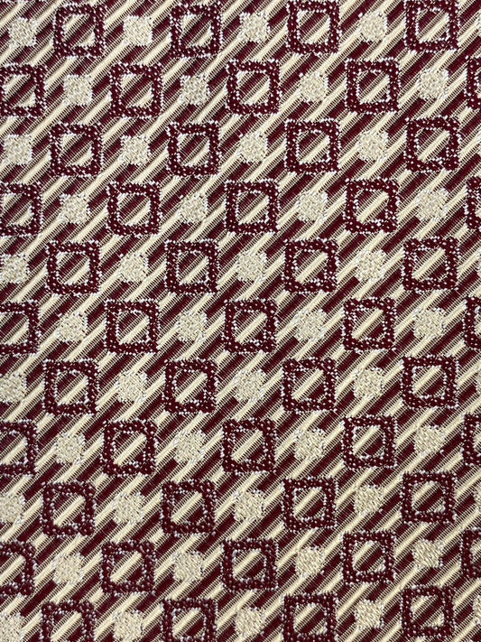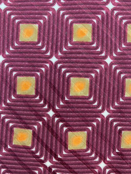 90s Deadstock Silk Necktie, Vintage Wine Geometric Square Pattern Tie, NOS