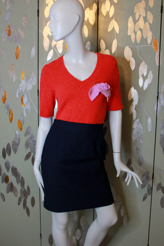 2000s Roksanda Red Wool Knit Sweater Top with Pink Bow, Medium