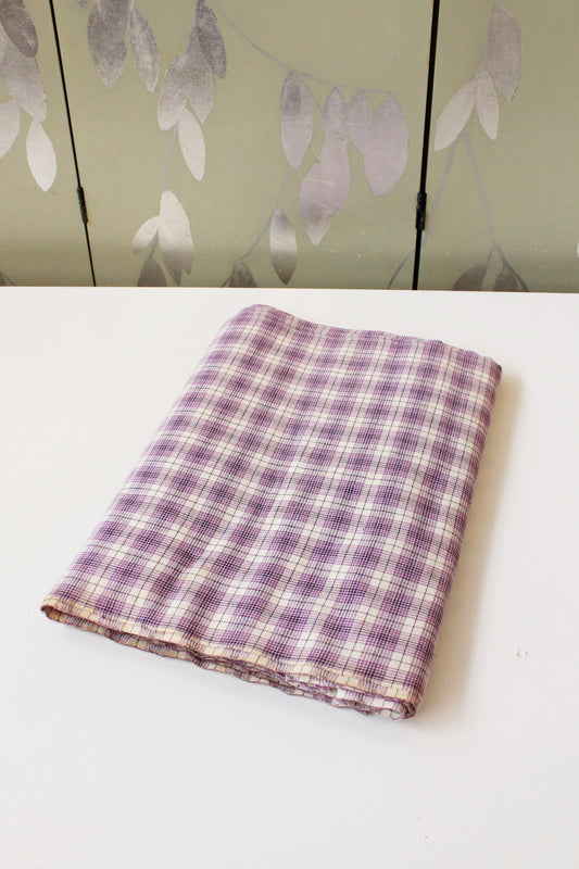 1920s Purple And White Plaid Cotton Sewing Fabric, 9.5 Yards