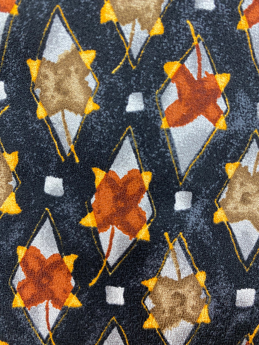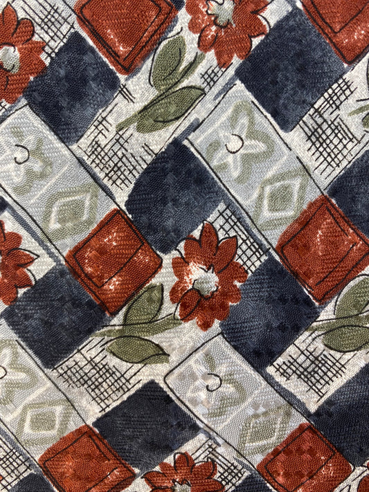90s Deadstock Silk Necktie, Men's Vintage Grey/ Rust/ Yellow Floral Diamond Pattern Tie, NOS