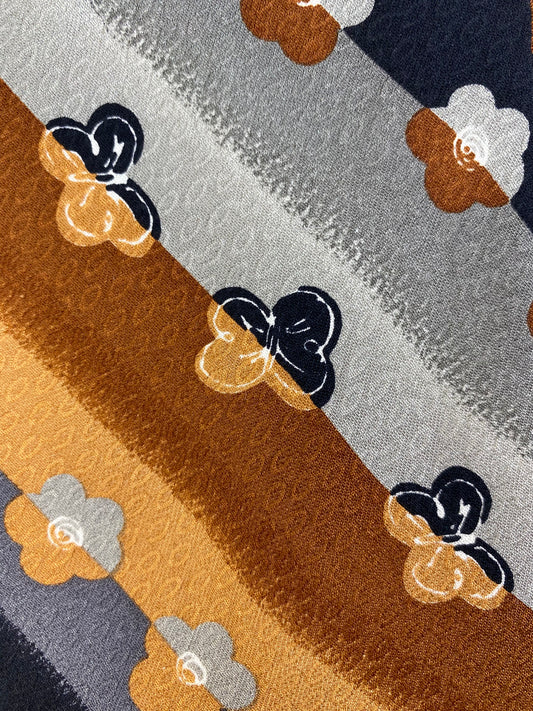 90s Deadstock Silk Necktie, Men's Vintage Grey/ Brown Floral Butterfly Diagonal Stripe Pattern Tie, NOS