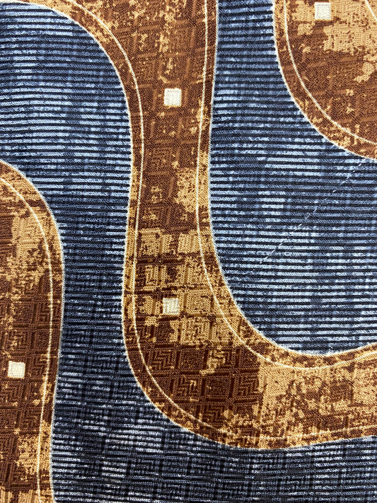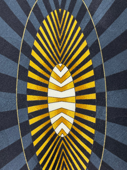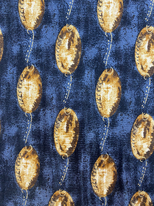 90s Deadstock Silk Necktie, Men's Vintage Grey/Blue Abstract Golden Oval Pattern Tie, NOS