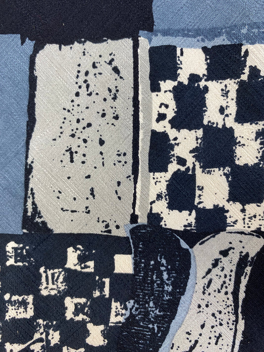 90s Deadstock Silk Necktie, Men's Vintage Grey/ Navy Abstract Pattern Tie, NOS