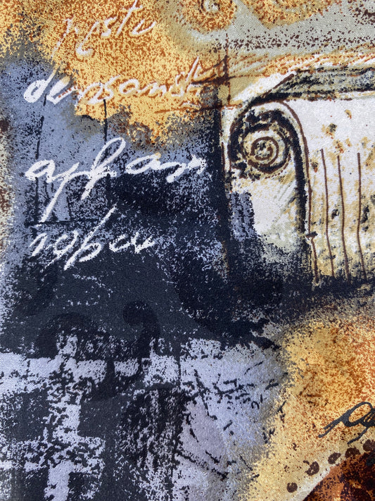 90s Deadstock Silk Necktie, Men's Vintage Grey/ Gold Classical Theme Abstract Pattern Tie, NOS