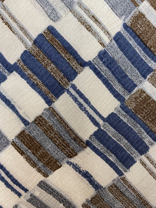 90s Deadstock Silk Necktie, Men's Vintage Taupe/ Blue/ Cream Check Pattern Tie, NOS