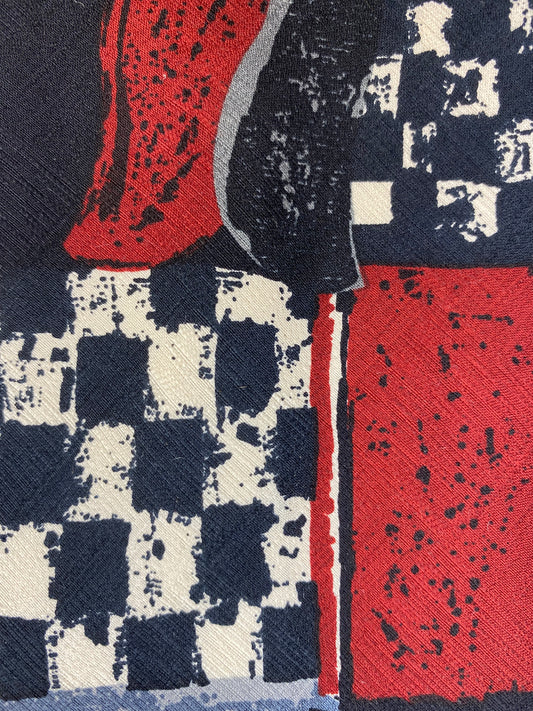 90s Deadstock Silk Necktie, Men's Vintage Wine/ Grey/ White Tulip Check Pattern Tie, NOS