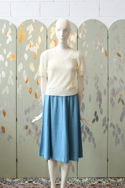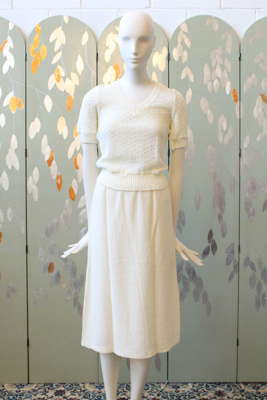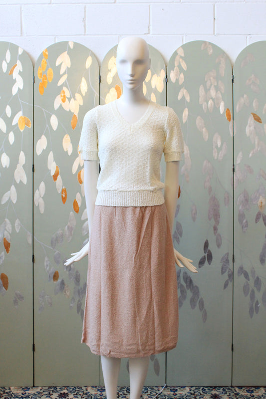 1980s Cream Knee Length Elastic Acrylic Knit Skirt, Medium