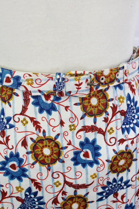 Vintage 1950s Deadstock Koret White Novelty Print Floral Cotton Pencil Skirt, XS