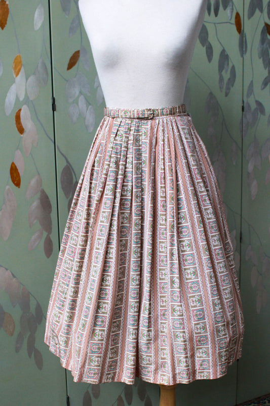 Vintage 1950s Floral Print Skirt with Matching Belt, Waist 24"