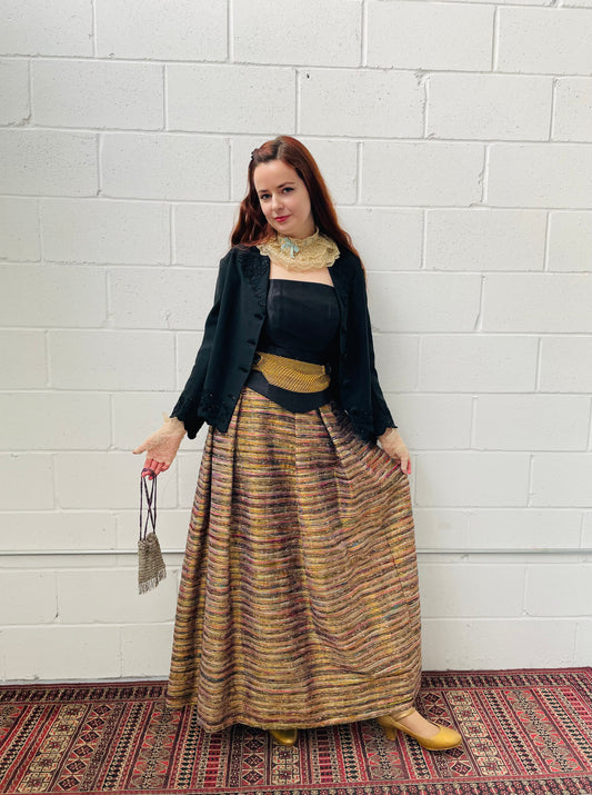 1970s Metallic Gold & Pink Striped Maxi Skirt, Waist 28"