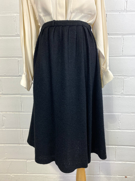 Vintage Black Wool Knit Midi Skirt, André Laug for Audrey Hepburn, W32"