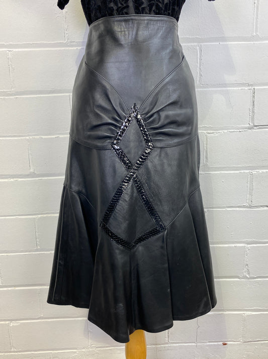Vintage 1980s Black Leather Trumpet Skirt, W30"