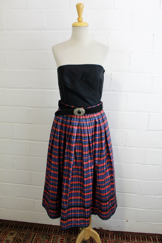 Vintage 1980s Austrian Red and Blue Plaid Dirndl Skirt, Medium