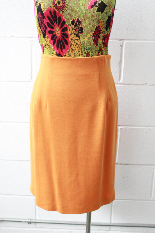 Orange/Mustard Yellow Wool Pencil Skirt, Waist 27"