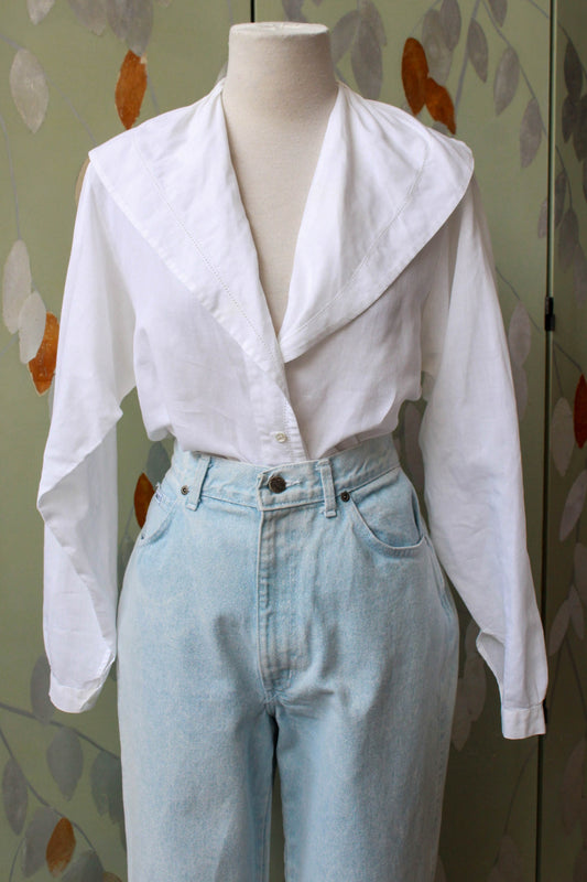 Vintage 1990s Karl Lagerfeld White Cotton Fashion Lady Illustration Blouse, XL
