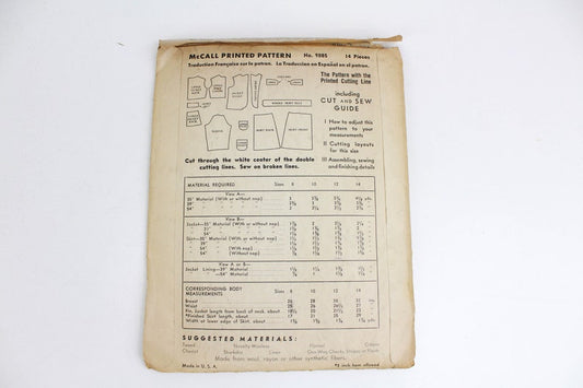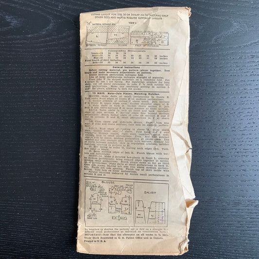 1930s Girls' Suit Sewing Pattern McCall 9885, Size 12