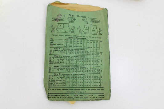 Vintage 1930s Women's Bloomers Sewing Pattern, Butterick 5847, Beginner's Pattern, Delineator Style, 37" Hip, Complete