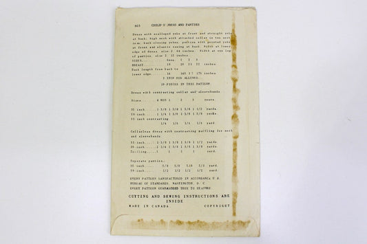Vintage 1930s Child's Dress and Panties Sewing Pattern, Hollywood Pattern 803, Complete