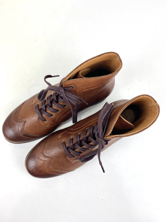 Boys' Period Repro Brown Leather Wingtip Brogue Boots, Made in Portugal