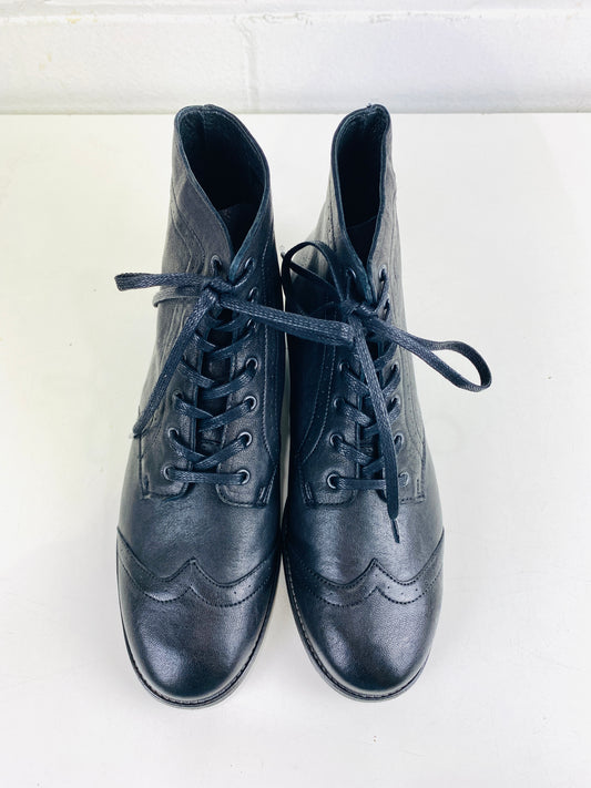 Boys Period Reproduction Black Leather Wingtip Brogue Boots. Made in Portugal.