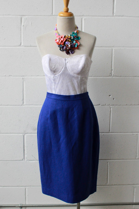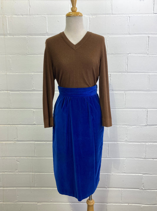 Vintage 1980s Blue Velour High-Waist Pencil Skirt, W26"