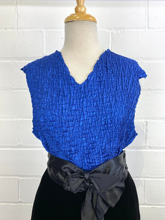 Vintage 1990s Royal Blue Stretchy Satin Crinkle Sleeveless Top, L
