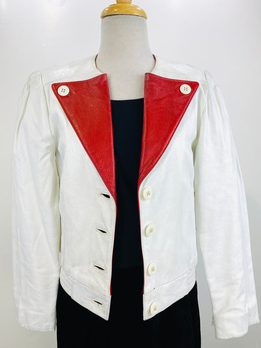 Vintage 1980s Women's White/ Red Leather Jacket, Medium