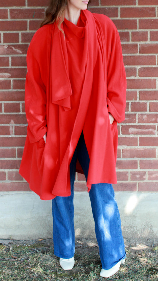 Vintage 1980s Red Karl Lagerfeld Cashmere Wool Coat, Large