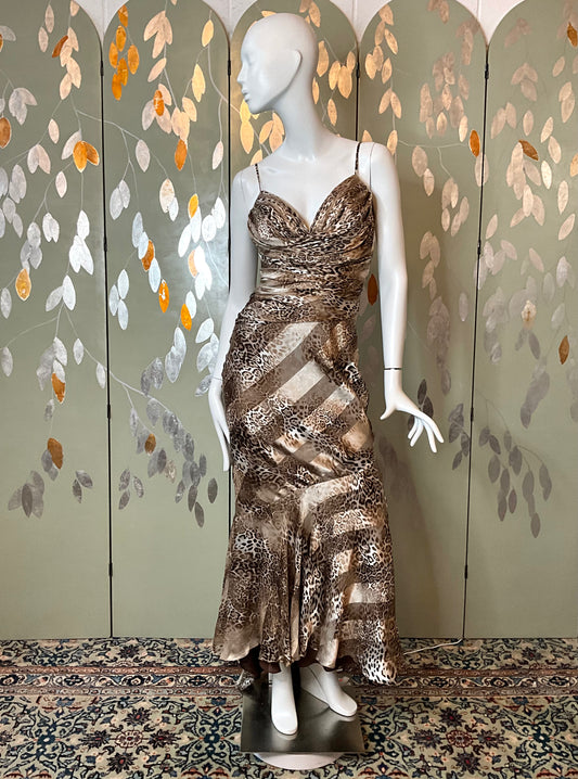 Y2K Leopard Print Silk Bias-Cut Gown, Medium