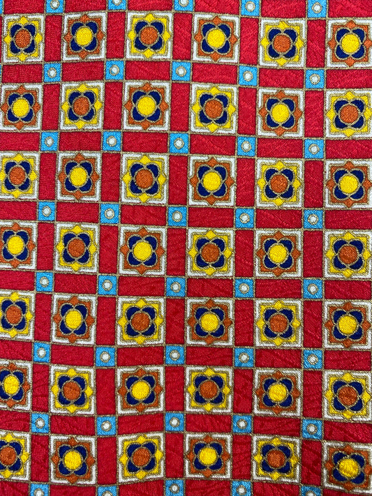 90s Deadstock Silk Necktie, Men's Vintage Red/ Gold Quatrefoil Foulard Pattern Tie, NOS