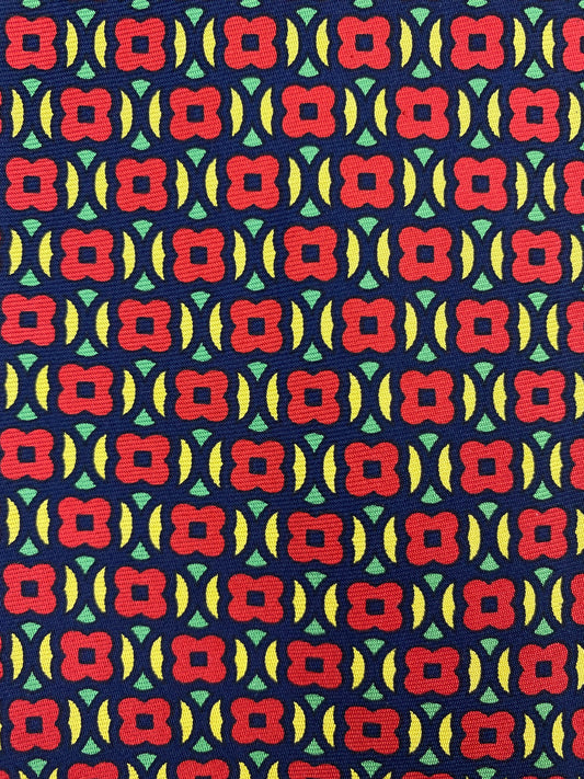 90s Deadstock Silk Necktie, Men's Vintage Gold/Red/Navy Geometric Pattern Tie, NOS