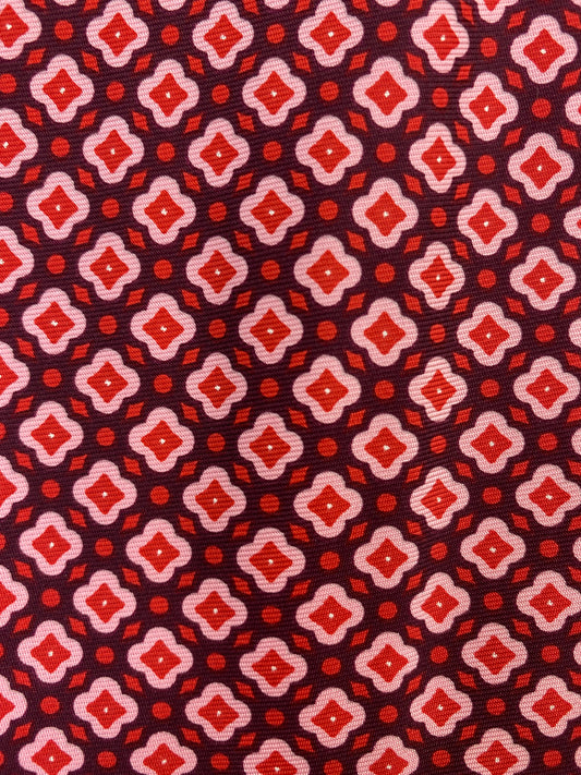 90s Deadstock Silk Necktie, Men's Vintage Red/ Pink Quatrefoil Pattern Tie, NOS