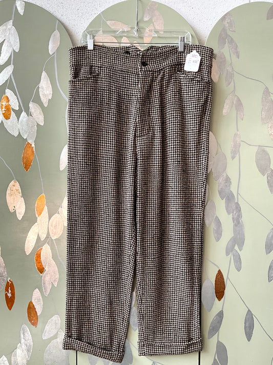 Reproduction 1930s Style Men's Black and Brown Woven Houndstooth Cropped Pants/ Plus Fours, W36