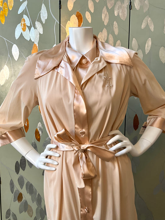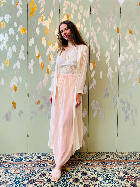 Vintage 1980s 3 Piece Nude Jersey & Satin Pyjama & Robe Set, Medium