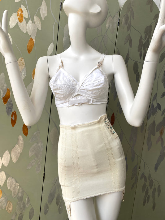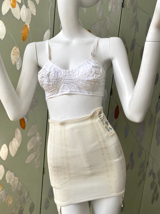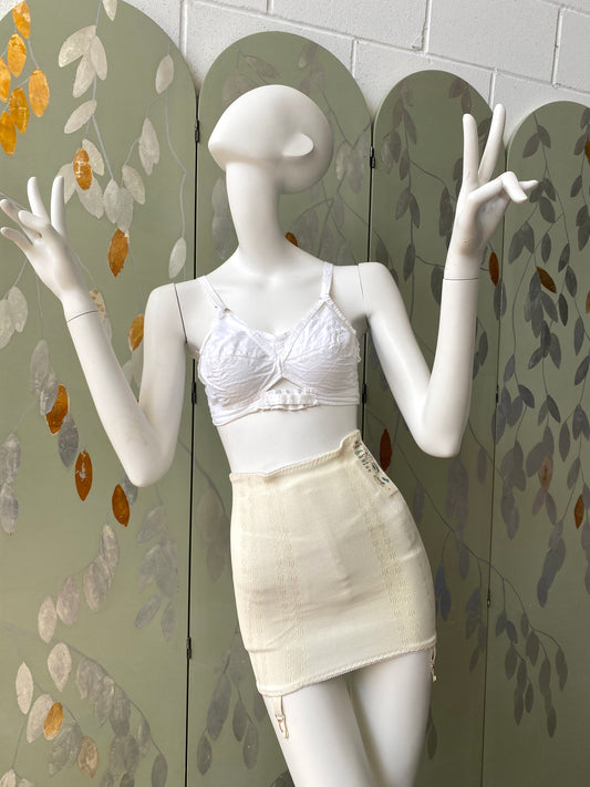 1950s Cream Girdle with Floral Embroidery, 26" Waist