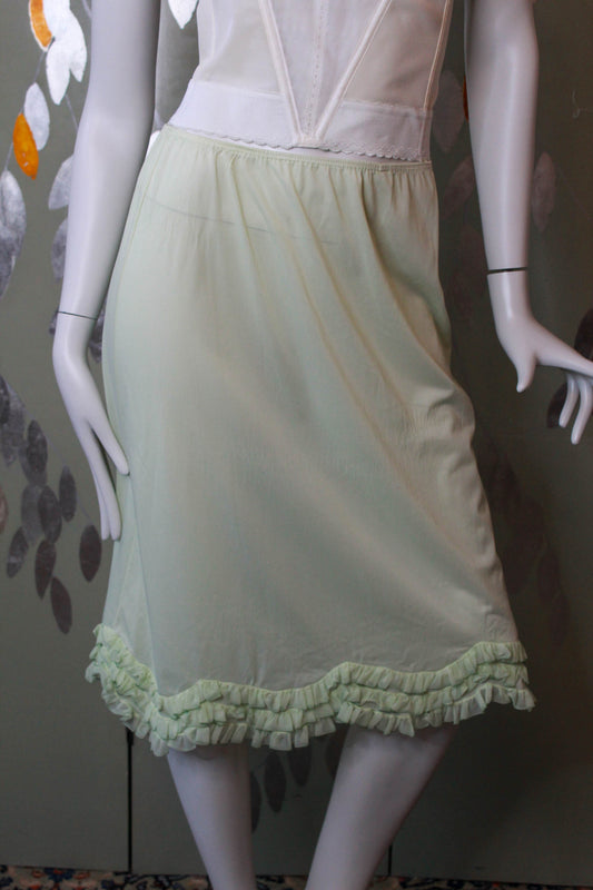 1960s Pale Green Ruffle Hem Slip Skirt, 28-30" Waist