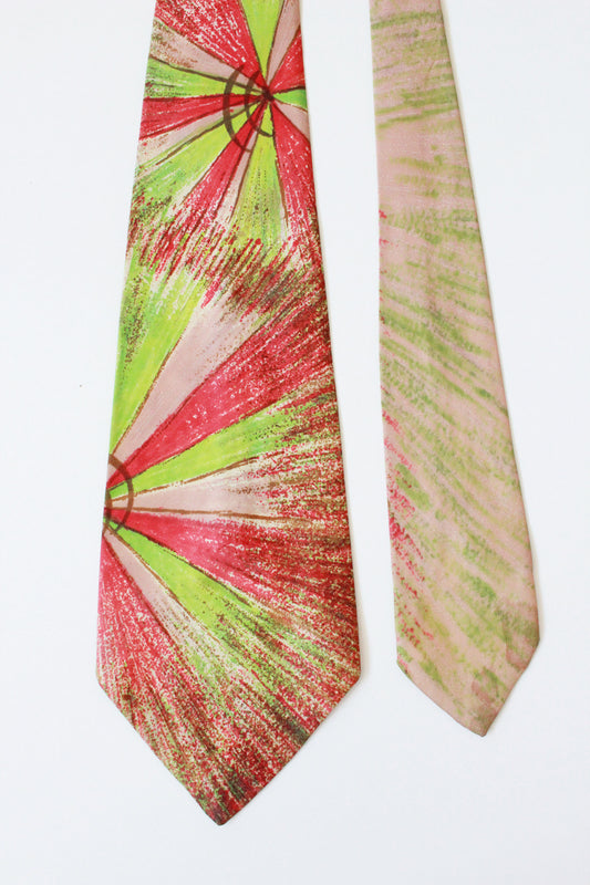 Vintage Early 1950s Hand Painted Neon Pink And Green Tie