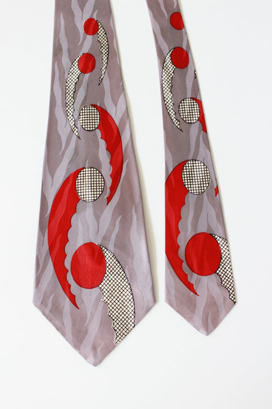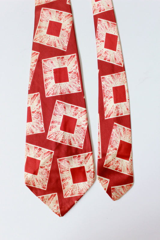 Vintage Early 1950s Abstract Red Squares Satin Tie