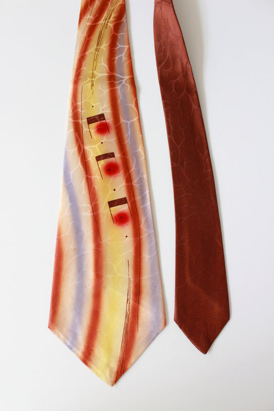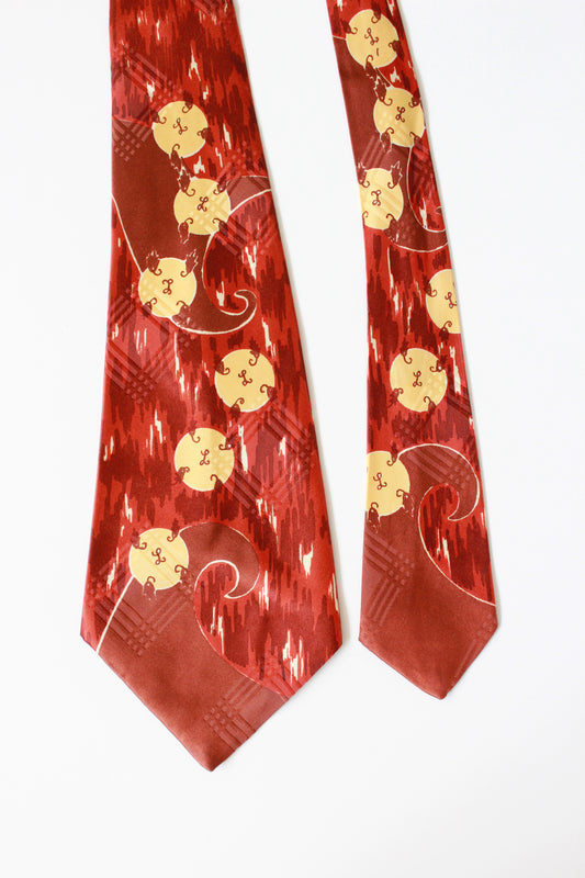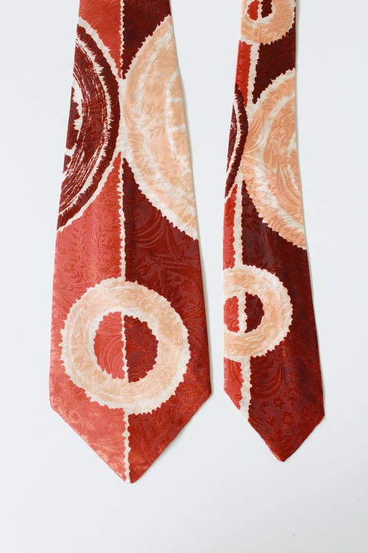 Vintage 1950s Handmade Rayon Brown And Rust Circle Tie