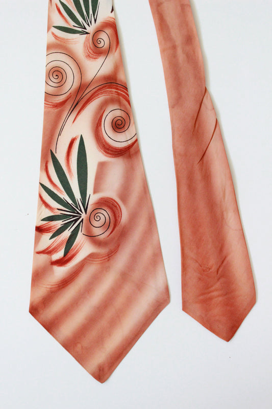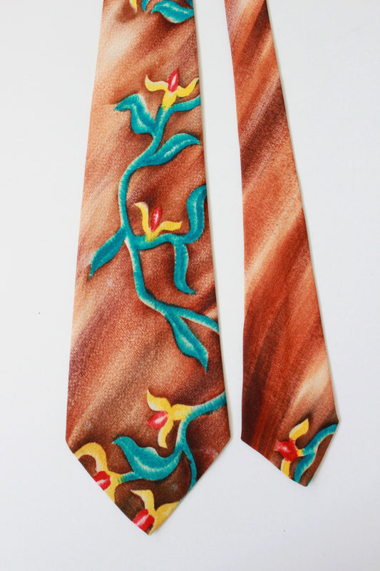 Vintage 1950s Hand Painted Orange Tie with Teal Vines