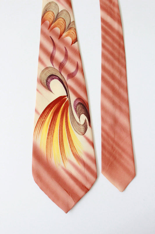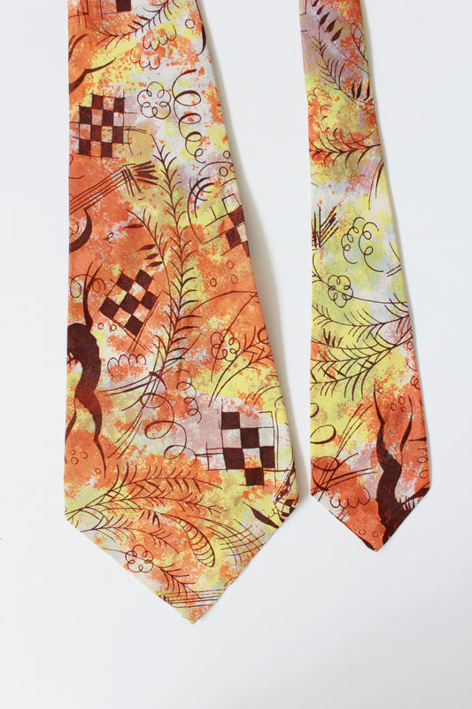 Vintage 1950s Abstract Autumnal Rayon Tie