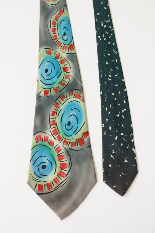 Vintage 1950s Abstract brush Stroke Hand Painted Tie