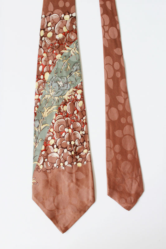 Vintage 1950s Brown And Sage Floral Silk Tie