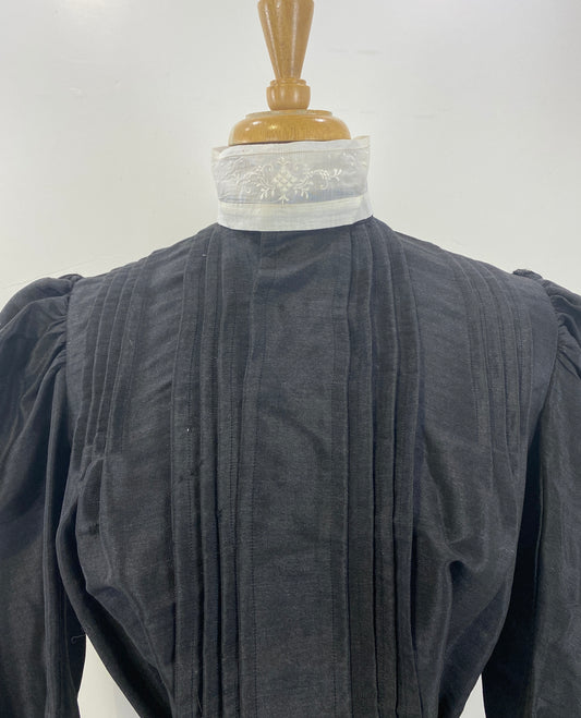 Antique Edwardian White Cotton Embroidered Stand Collar & Matching Cuffs Set