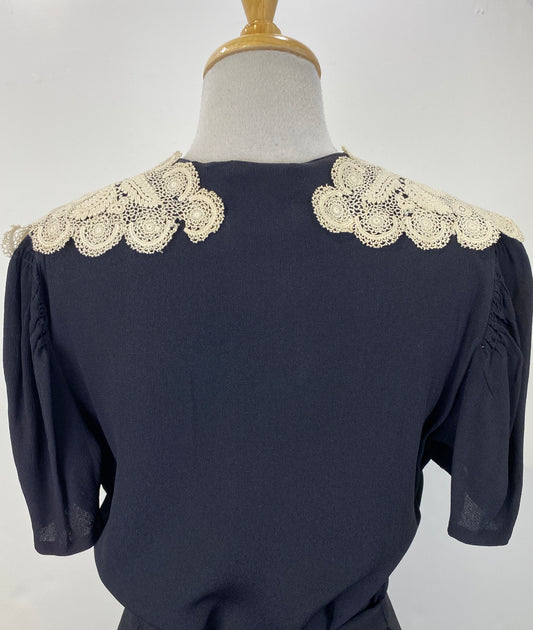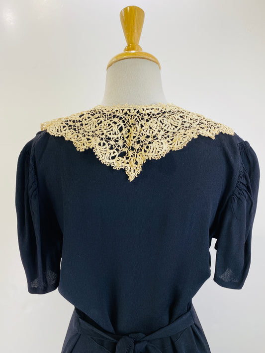 Antique Edwardian Cream Handwork Tape Lace Crochet Collar