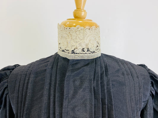 Antique Victorian Hand Needlework Beige Lace Stand Collar